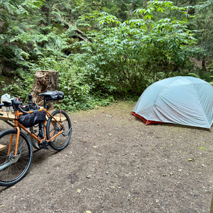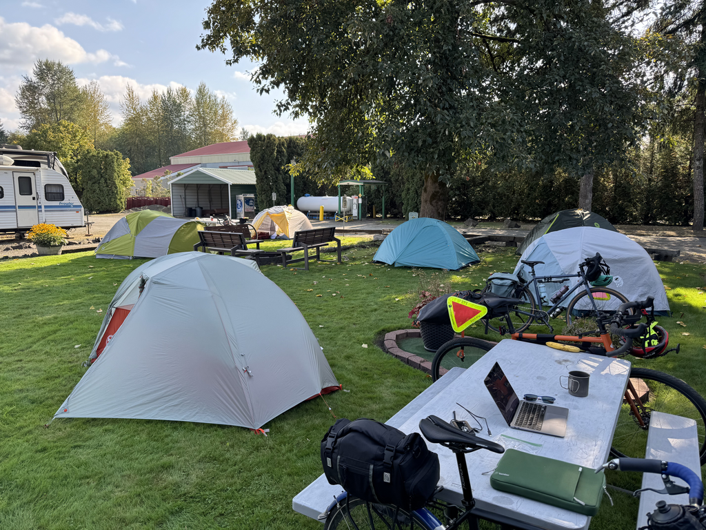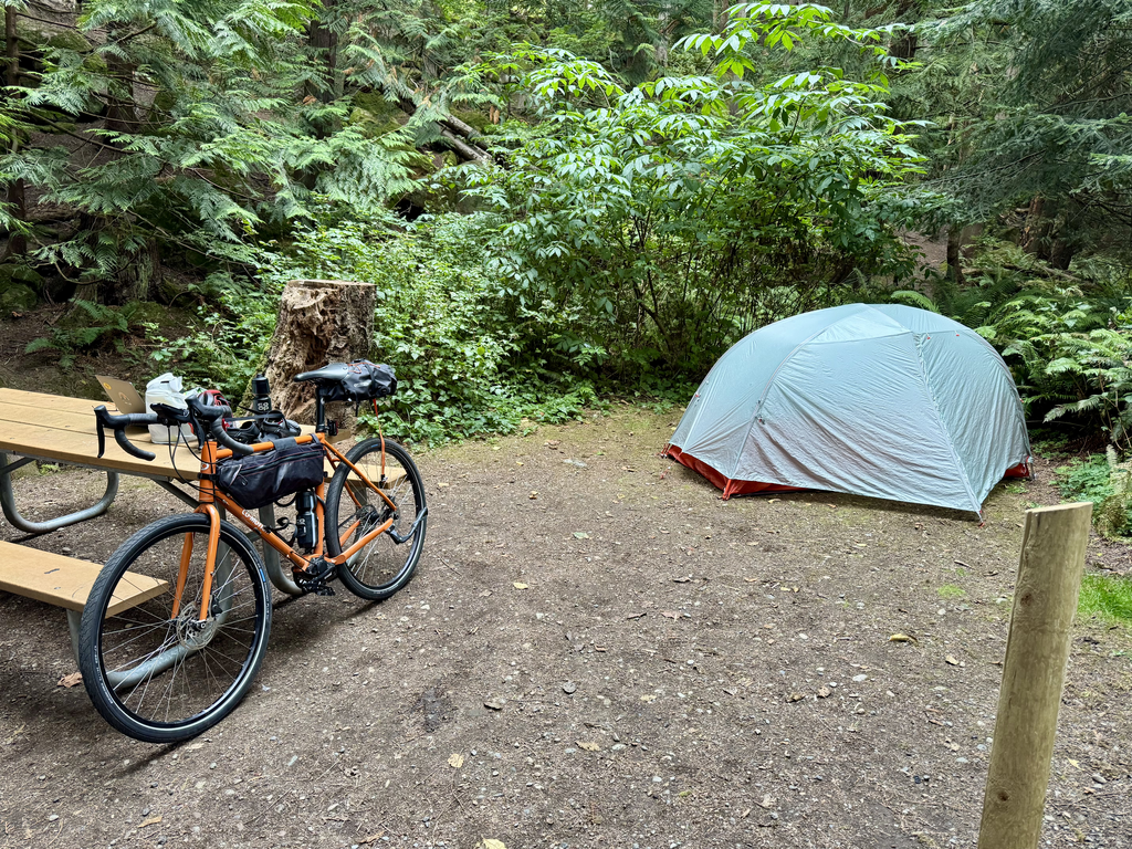 Finally we arrived campground, maybe the most beautiful and unique campground I've been to. Just boggles the mind that we started at the Peace Arch on the Canadian border and arrived here a couple weeks later, on bikes!