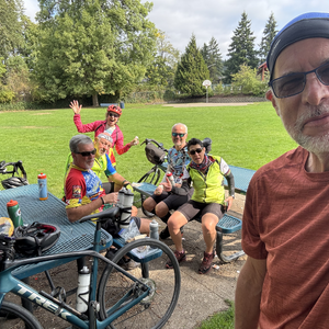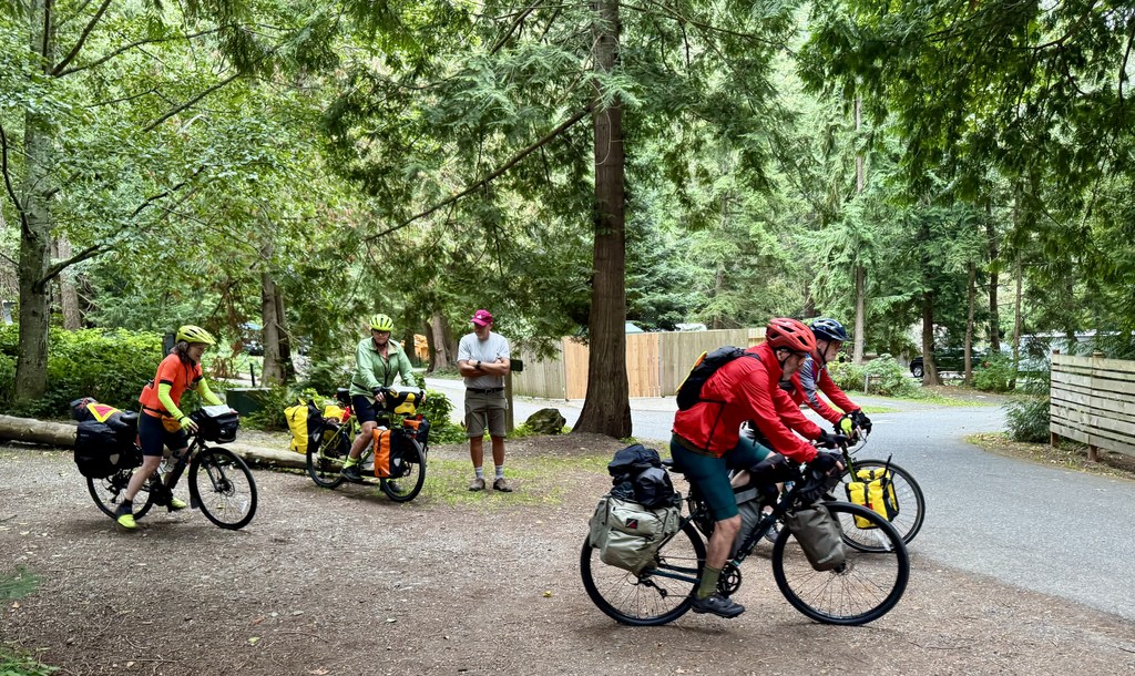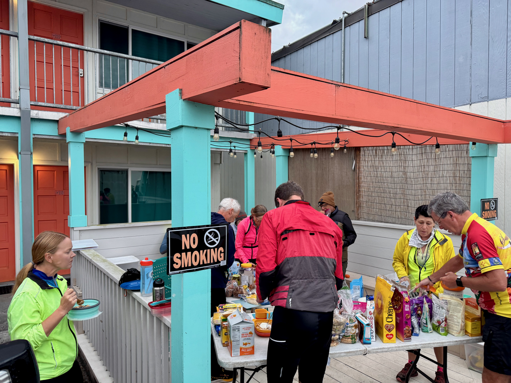 I'm thinking that the world of road-based touring is getting smaller by the day, at least here in the US. Of the 13 riders, I think only four (including me) have arrived not knowing any of the others. Even our leader, Brielle, knew at least three or four already. Much of this is by design, of course, they call up their buds and say let's go do a trip together. But it's actually more than than. One guy did a TDA (another tour group) ntrip in Korea and Japan with Stephane, a French guy that I briefly rode with on the Transam in 2023. Three of us were independently signed up for a TDA trip in Africa called cape to kill for fall 2026, before it was cancelled. Rosana biked with a woman in the Baltics this year who was also signed up for that same trip. None of the four of us knew each other! It get's worse: Stephane signed up to do this crazy TDA trip from Tuktoyaktuk to Panama City. The woman Rosana met in Estonia and Pam, one of the women on this pacific coast trip, have both signed up to the last part of Stephane's trip: Mexico City down to Panama City.