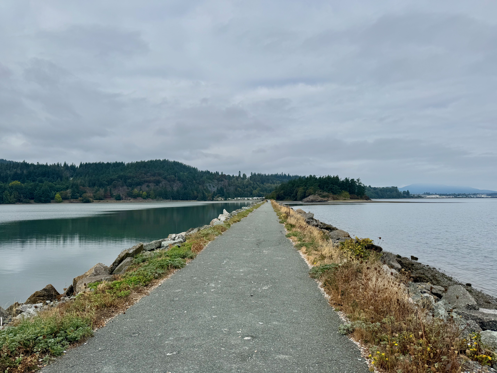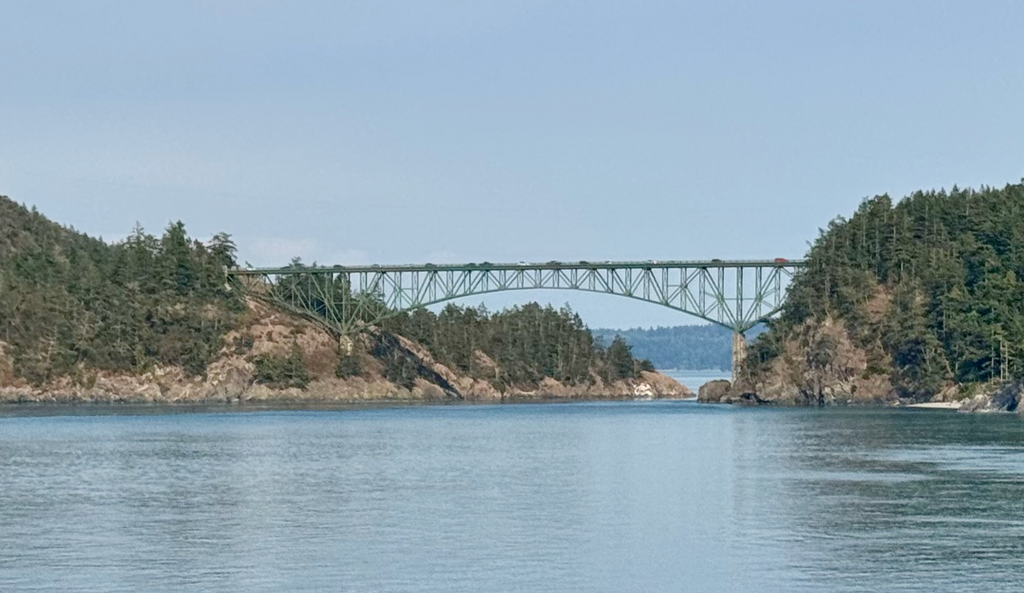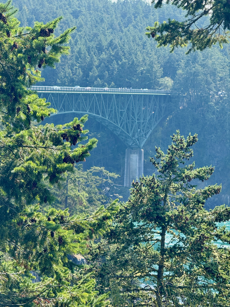 The day included a few more miles of great bike trails, some great downhills, and the Deception Bridge in two of the following pictures. Beautiful bridge w/ heavy car traffic and a tiny raised walkway on the side. A couple of us opted to take up the whole lane, which took the tension out of it for me. I worry more about walking/biking along 300-ft drops than a car or 10 :-) I was vindicated when one of the Jeffs was finishing the walk across the bridge on the narrow pathway, saw me waiting, bumped a protrusion from the railing and teetereed awkwardly against the railing. Jeff is 6'4"; the railing looked very low. But all was good!