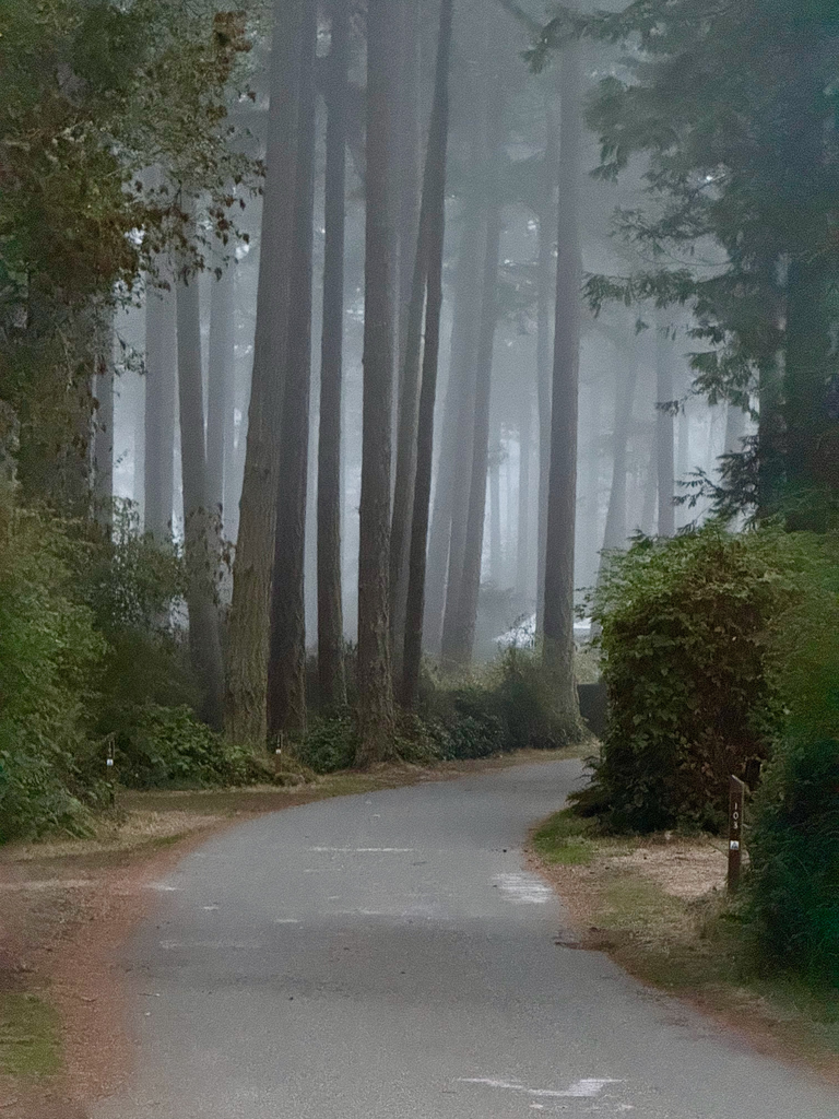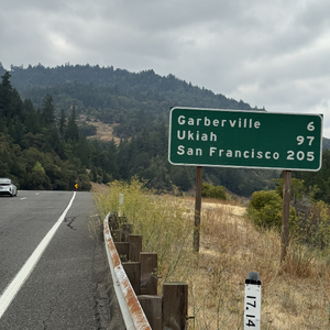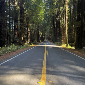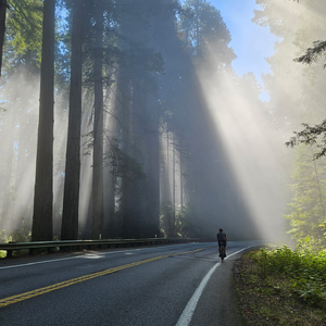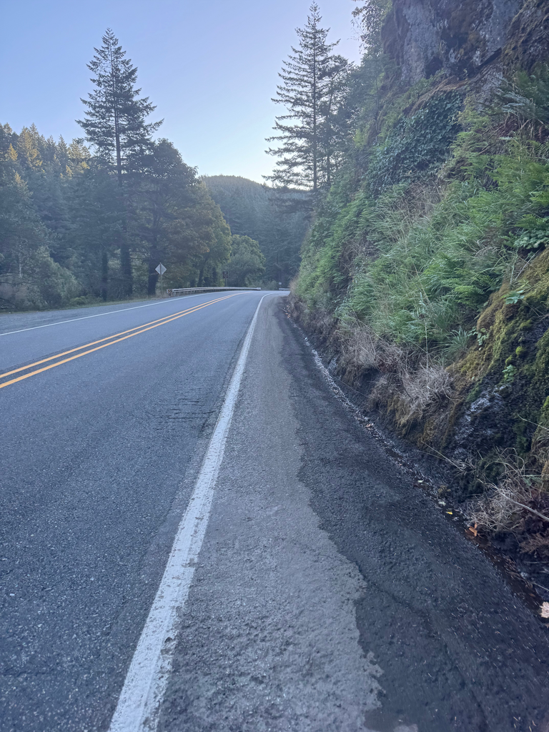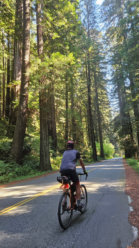 Once out of Fernwood, we climbed through bucolic countryside until we dropped into The Avenue of the Giants. We stopped at the first redwood grove we got to and just wandered for a bit. The contrast between the busy 101 highway and the absolute peace and quiet of the giant trees was crazy. I laid down on a fallen tree for about 10 minutes, just staring up through the surrounding trees. Forest bathing indeed.