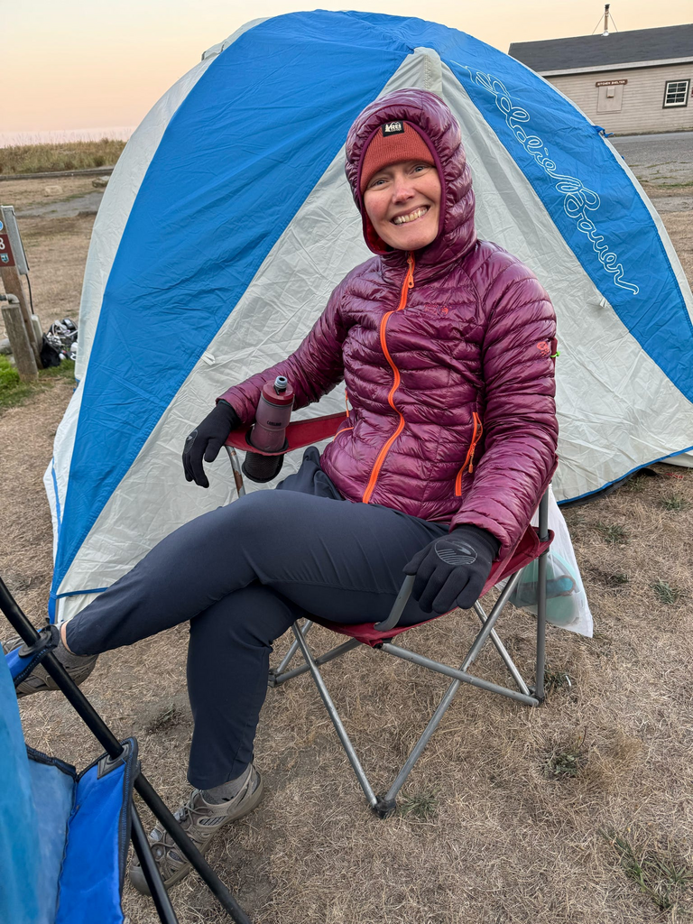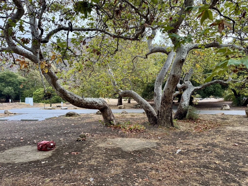Mistake. I usually try to get to sleep at 8:30 or 8:45. At 9:15 one guy was going full blast six feet near my tent, and one of the other snorers wasn't even asleep yet, but talking quite loudly on the phone. Quite normal behaviors, but it was absolutely calm and all six of us in that site could hear every movement from everyone else. After 15 minutes I called out (softly, as remember everyone could hear everything) to our leader, "Brielle, how YOU doin?" She laughed long......