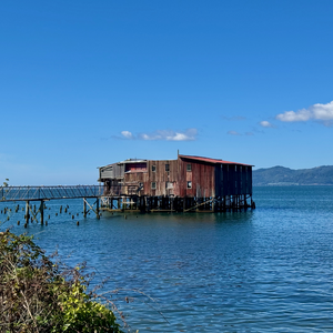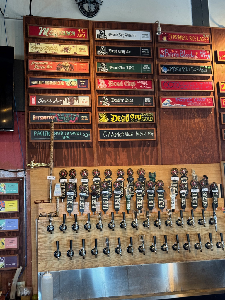 The highlight of this day, besides the ferry ride (love ferries), was the stop at Rogue Brewery. Rogue makes great beer but is mostly unknown in most of the country. I had no idea it was here and just turned at the sign. This took me out on an old wooden pier where they had their "Public House", w/ all their beers on top. Six more folk showed up before we finally left.
