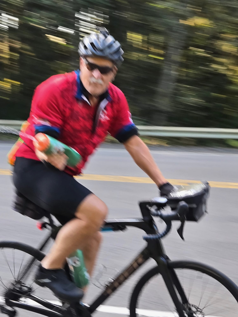One of the issues w/ this route is a short, uphill tunnel where riders have to take up the lane and trust RVs to see the flashing yellow lights and your flashing 350-lumen rear blinkies. We had a couple riders who didn't trust the RVs and hugged the side of the road, which allowed the cars to just rip past in the tunnel. This was a mistake.