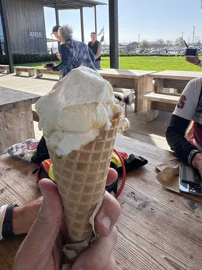 It was fun, though. I started riding with/ Doug (owned a company decimated by tariffs and newly retired) and Molly (worked for Bike Friday for a few years), two folk who met on an earlier ride and got so close that their families know each other. Both are exceedingly strong riders. We were soon joined by Jim, recently retired from a company that builds facilities for high-tech needs, recently work in San Francisco for a relatively large amount of time.