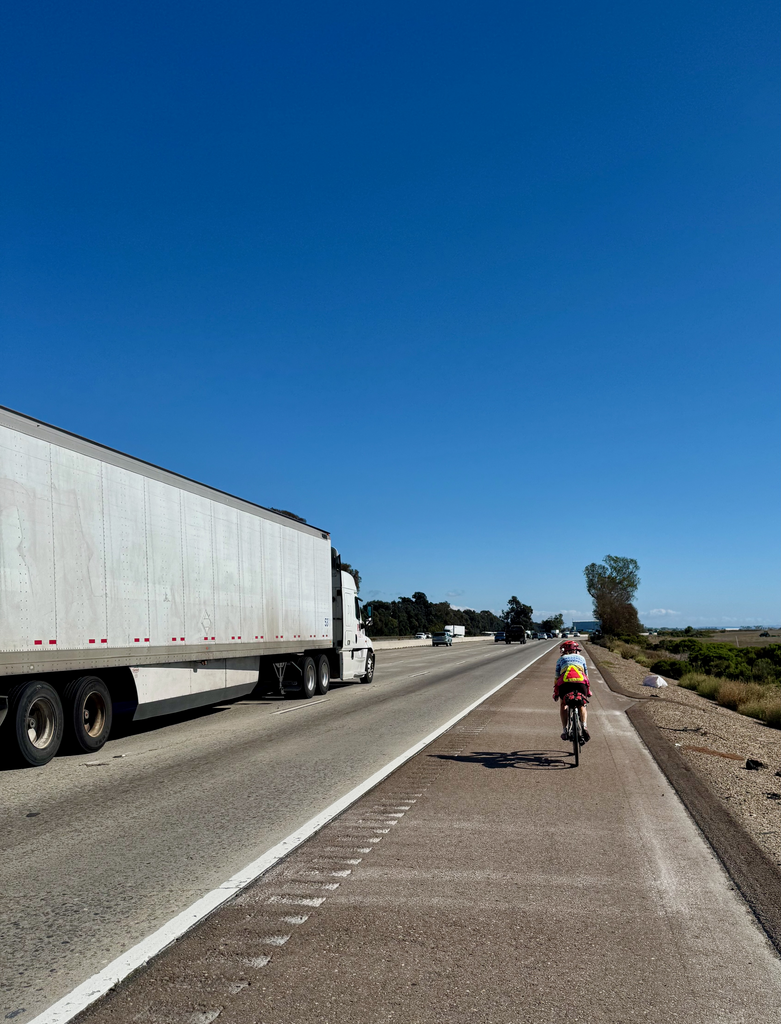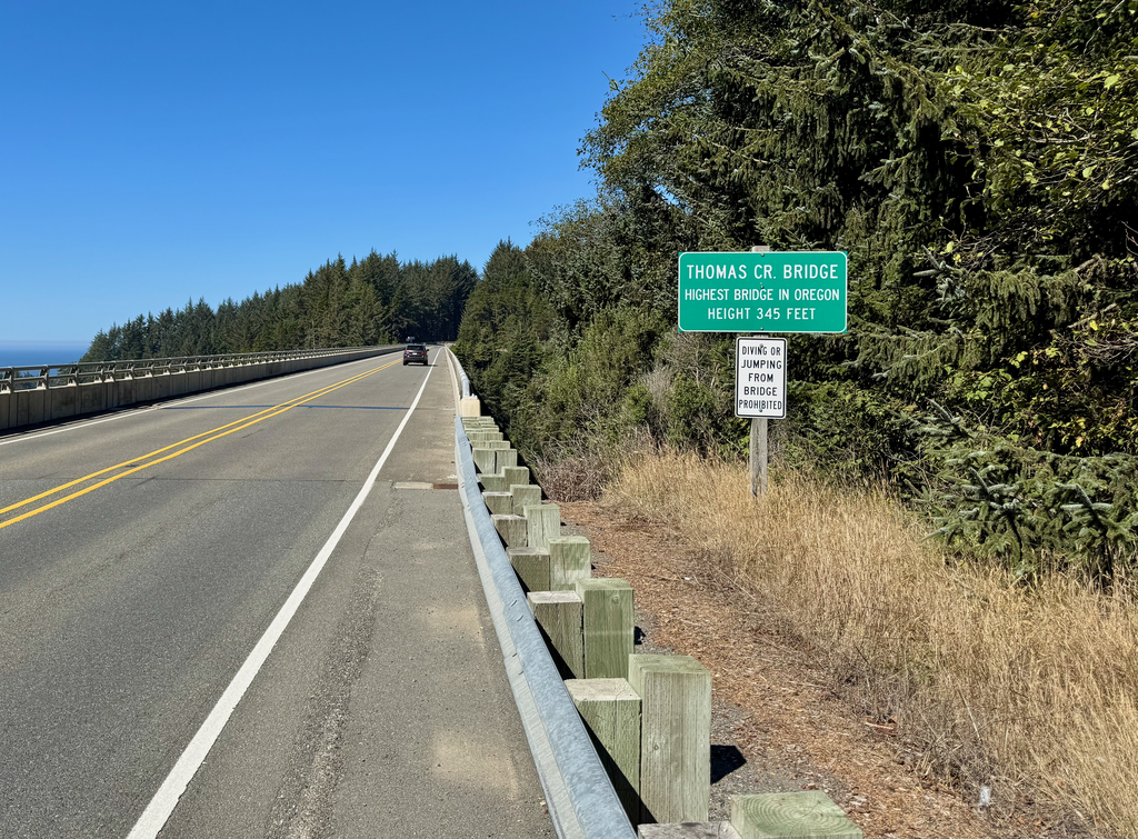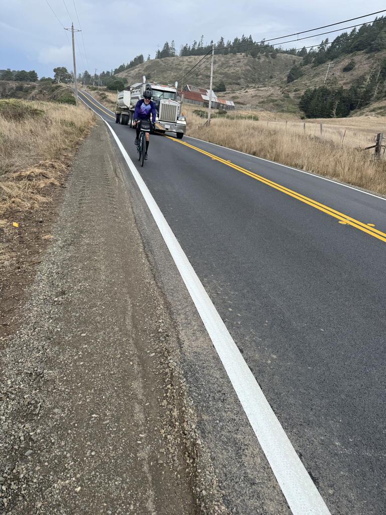 I will add that while the coast is almost uniformly gorgeous and many of the campgrounds wonderful, we deal daily w/ non-stop traffic, narrow or non-existent shoulders, and narrow bridges that must be crossed in the car lanes (riding in the sidewalk is rarely feasible). Comparing it to something like the TransAm is difficult because they are so different.