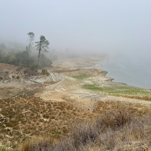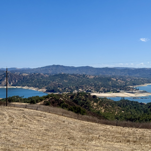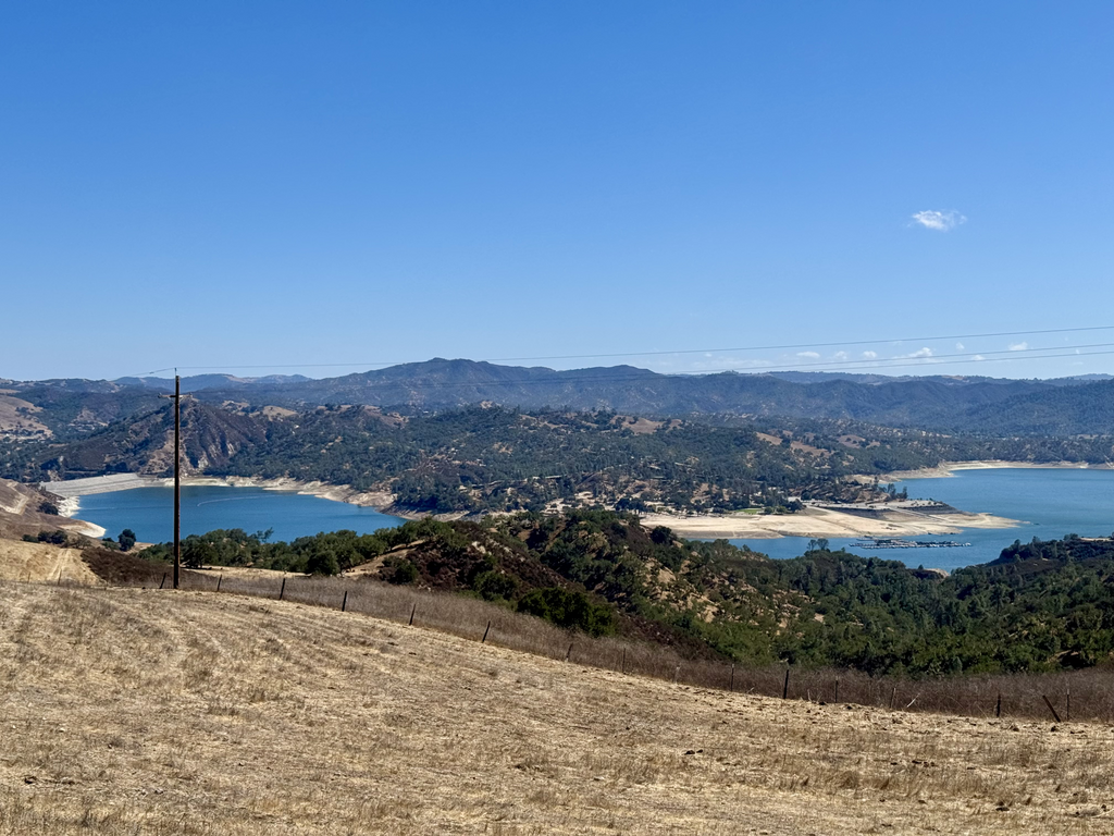However, all very striking, we are in the midst of three days away from the coast because of the damage to the PCH around Big Sur, and it's just an entirely different state. Dry, sandy hills as far as the eye can see. The climbs at the end took us up to the lakes, which gave us beautiful views below. In the last few miles into the camp, I saw a bald eagle, a pronghorn antelope, some longhorn cattle (is that legal outside of Texas?), and a big (as the palm of my hand) fuzzy tarantula crawling onto the road five feet from my sandled, sockless feet. Needless to say no pics of any of this :-(.
