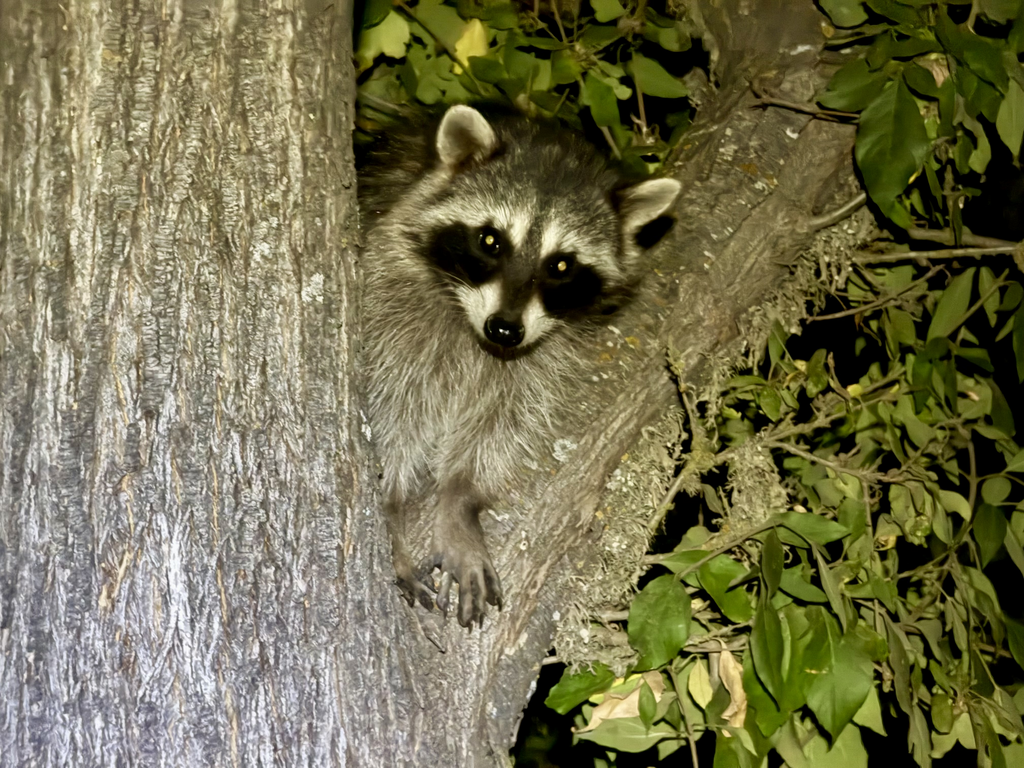 As darkness fell, the mosquitoes rampaged for about the first time on the tour, and the raccoons returned. I looked into the trees and saw a whole family of five or six. When I pulled out my phone, only one was left, but he just laid there under the tree, clearly not seeing any reason to move just because three guys were yelling at him. As I type this, I hear Anne calling "get away, get away...."....