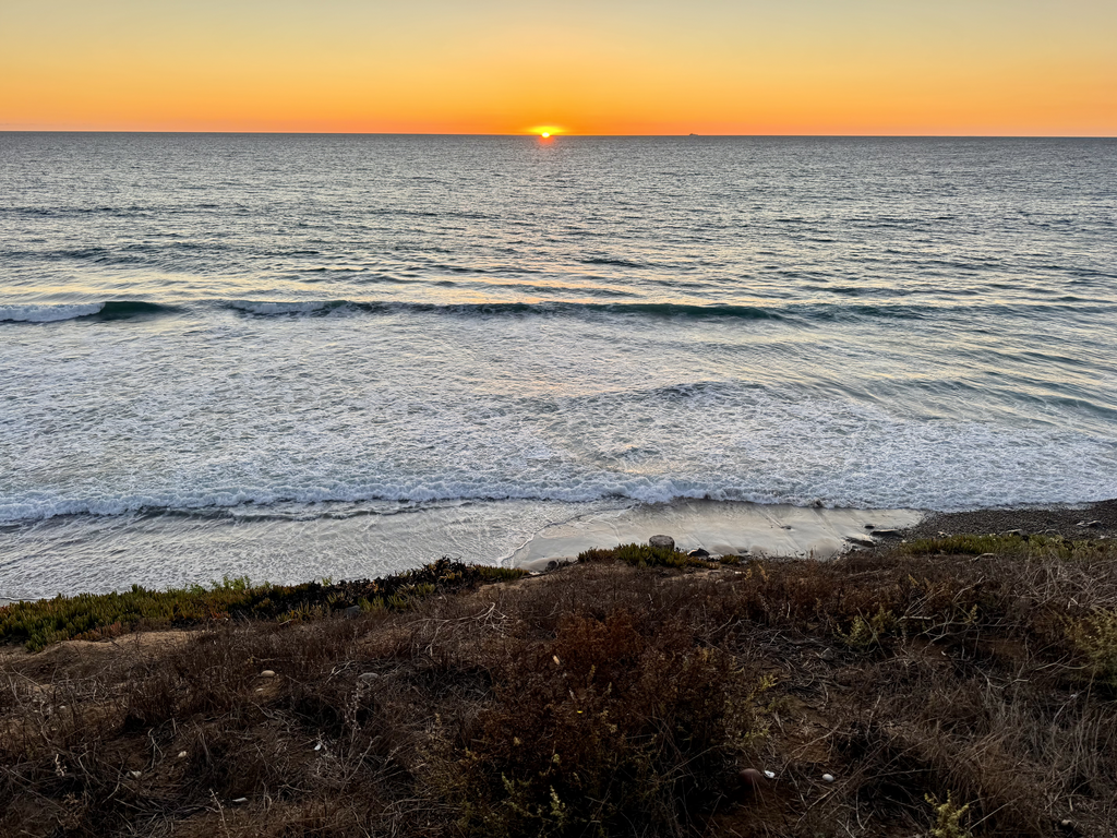 During dinner I had a fascinating conversation with Pam about her 6000-mile tour in Africa last year, and then we trooped down to the beach to watch the sunset. We ended the day watching a seal chase a big fish right at a guy fishing on the beach. He drops his pole and flips it onto the beach by smacking at the water as the seal tries to grab it away from him.