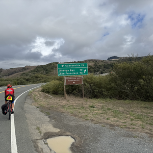 Tomorrow a rest day, then eight straight days of riding into SF, culminating in two days totally 143 miles and 9300 ft climbing.