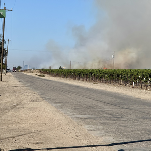 We spent a decent amount of time on short off-road routes: we were in the fields, rather than just flying past. Coming out of one such section, we saw a fire raging in a field a quarter mile down the road. There was one fire truck there at the time, and more coming, but given that the fire was upwind at about 18 mph, we hied it down the road.