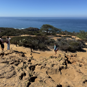 The ride into San Diego was beautiful; the whole area around the hostel is basically a throwback to the 60's. From the decor of the hostel to the kids smoking weed and holding hands while doing the kumbyas inside, it was a hoot. Hightlights included climbing almost a mile at 8% up to the Torrey Pines State Park, w/ beautiful views of the countryside and ocean, to going past Torrey Pines golf course where Tiger Woods was ... well ... the old Tiger Woods.